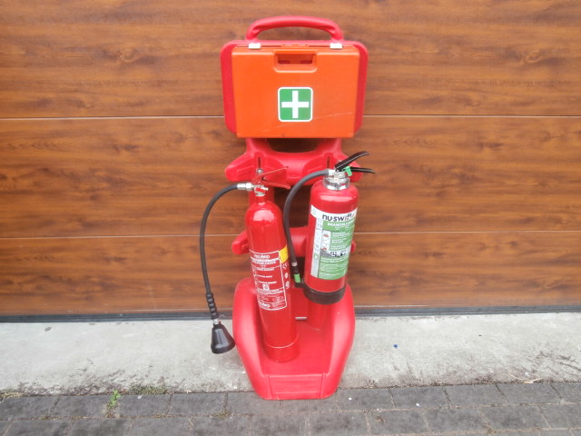 Uniek product in Nederland een polyester mobiele brandblusserwagen, geheel compleet set voorzien van twee brandblussers. Uniek voor bijvoorbeeld opslagplaatsen, benzinepompen, evenementen, opvanglocaties en bouwlocaties.